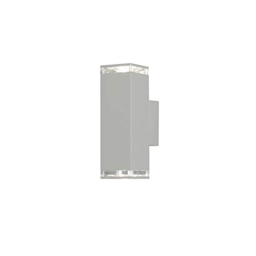 Konstsmide Handmade Outdoor Wall Light Mains Powered/Pollux Double Up Down Modern Lantern/2x7 Watt Max GU10 Lamp/Clear Acrylic Glass Lens/Aluminium/IP44/White Outside Light