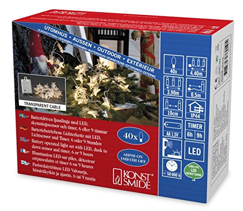 Konstsmide LED Decorative Fairy Lights Acrylic Stars/Battery Operated 4X AA 1.5 V (Not Included) / 6 Hours and 9 Hours Timer / 40 Warm White Diodes/Transparent Cable