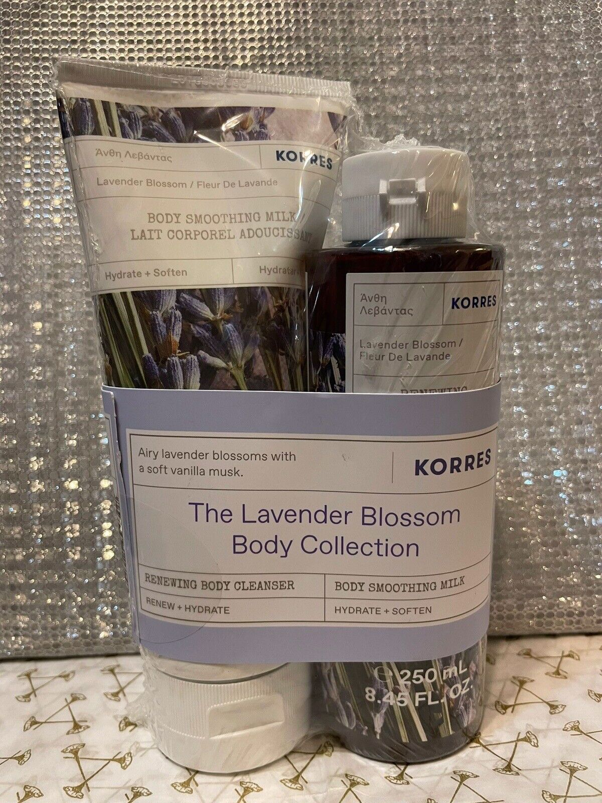 Korres Lavender Blossom Body Smoothing Milk Cream Body Wash Cleanser Gift Set