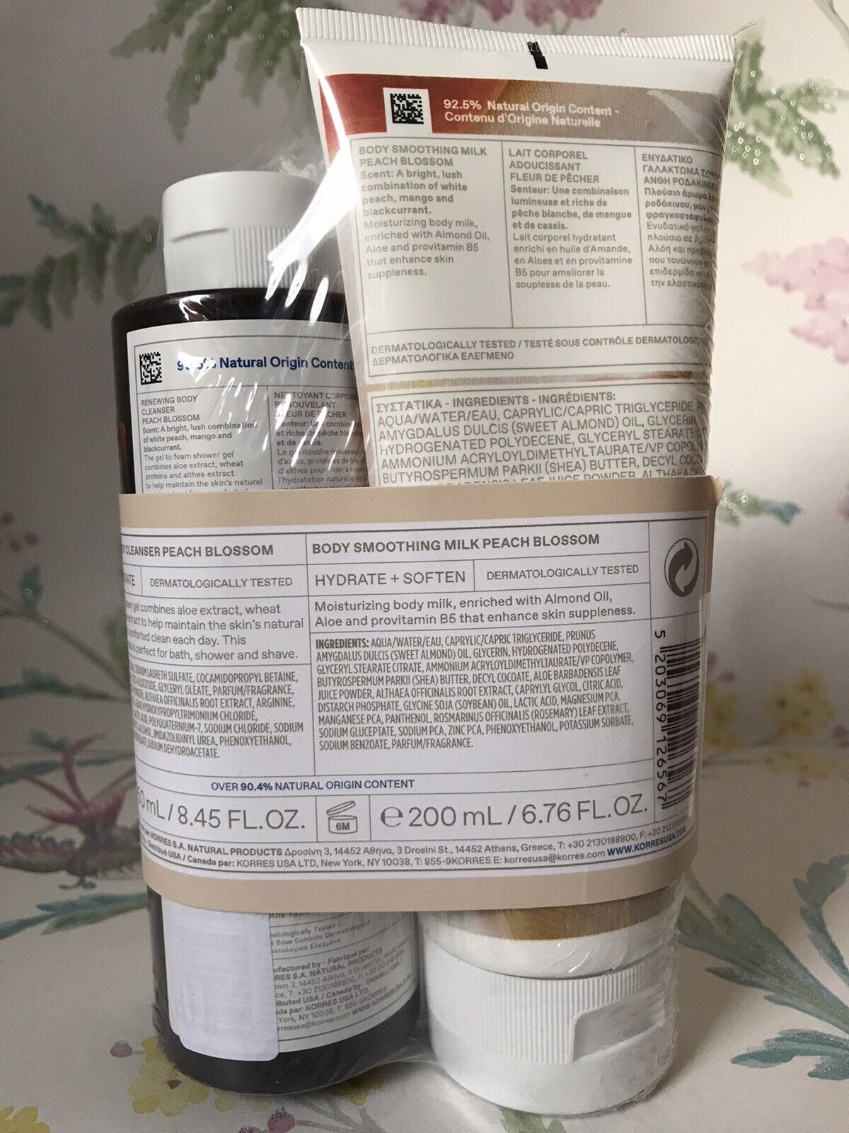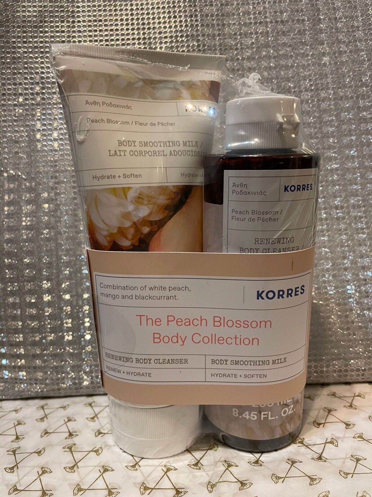 Korres Peach Blossom Body Smoothing Milk Cream Body Wash Cleanser Gift Set
