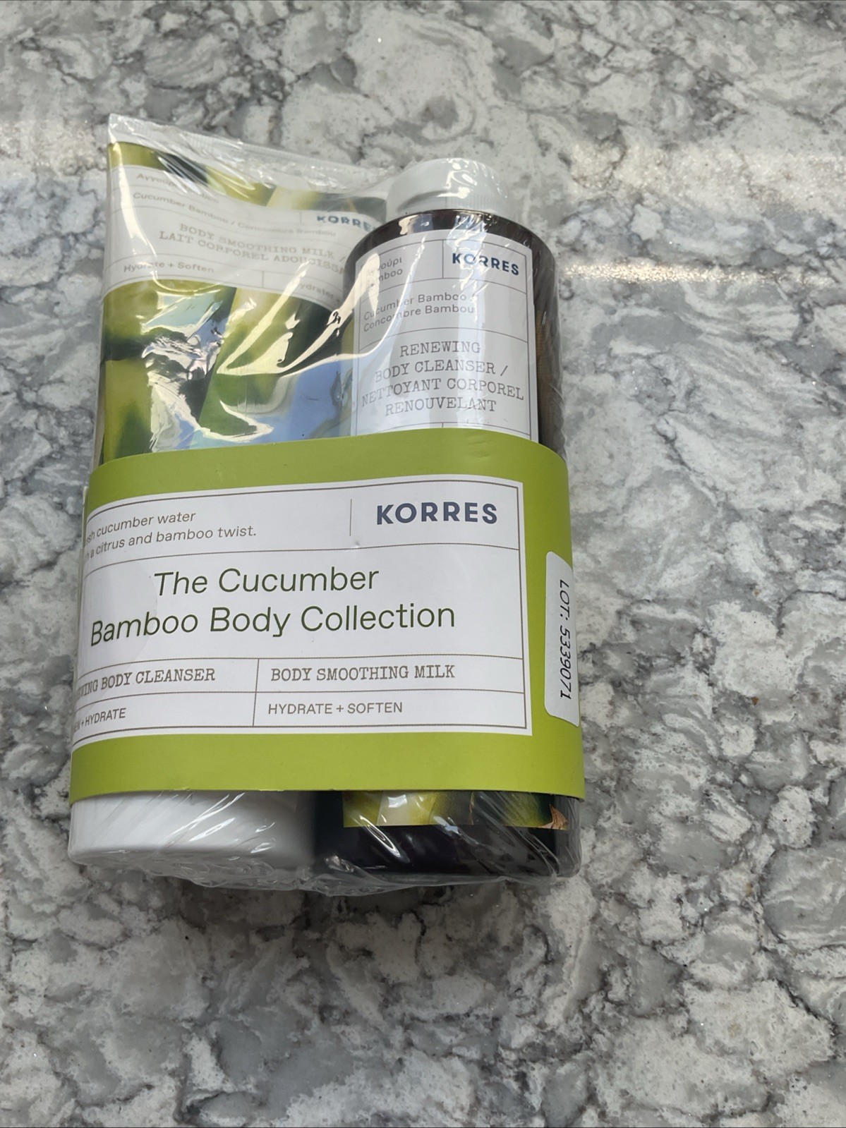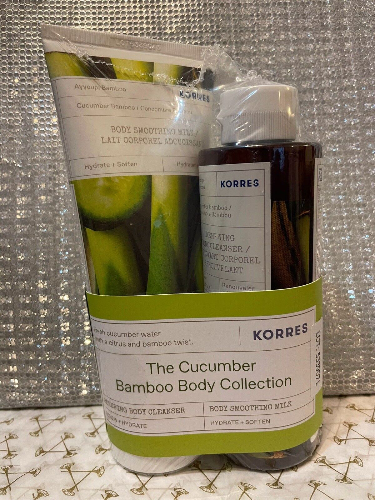 Korres Cucumber Bamboo Body Smoothing Milk Cream Body Wash Cleanser Gift Set