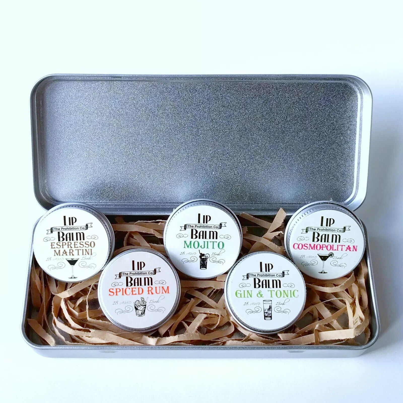 Lip Balm Gift Tin: Espresso Martini, Gin & Tonic, Mojito Cosmopolitan Spiced Rum