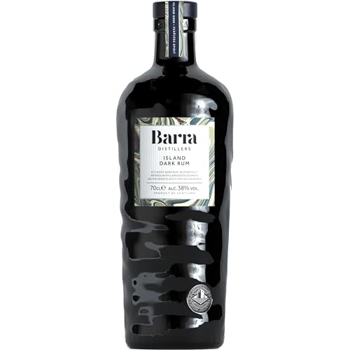 Barra Distillers Island Dark Rum - 38% ABV, 70cl - Award-Winning Scottish Rum from the Outer Hebrides - Island Born Premium Dark Spiced Rum - 100% Plastic-Free and Recyclable Unique Rum Bottle