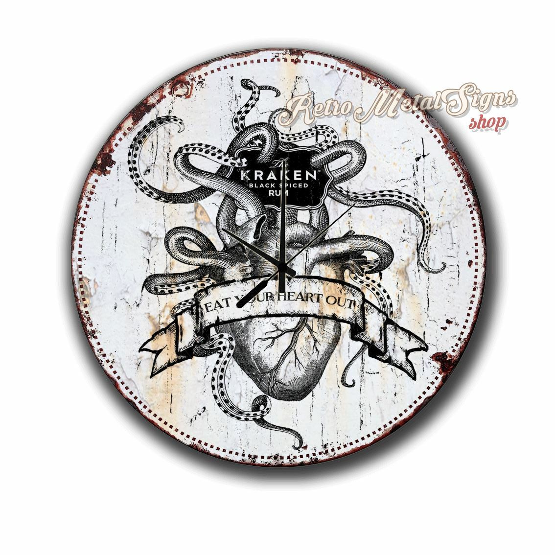 Kraken Rum vintage pub bar 300X300 12" DIAMETER METAL TIN SIGN WALL CLOCK