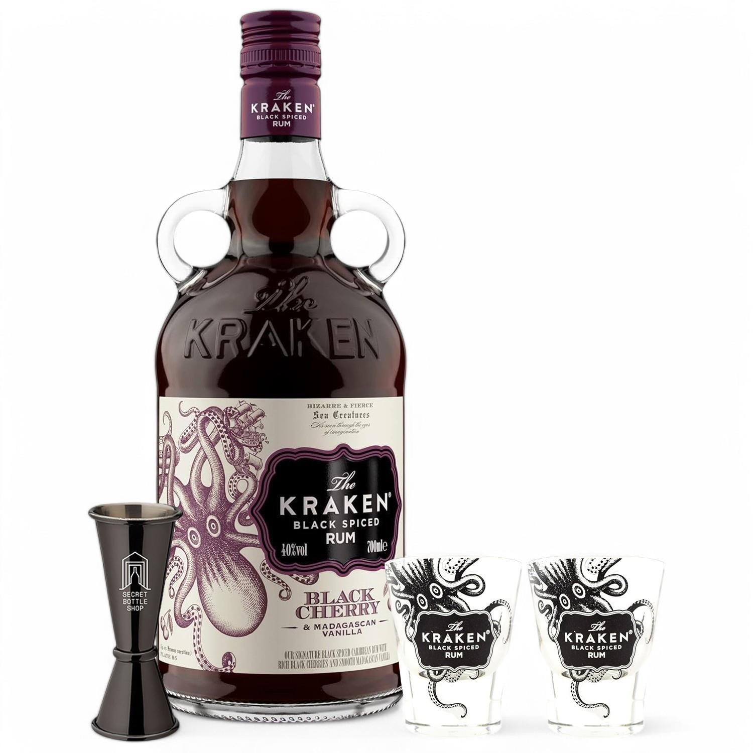 Kraken Black Cherry & Madagascan Vanilla Spiced Rum 70cl - Glasses & Jigger Set