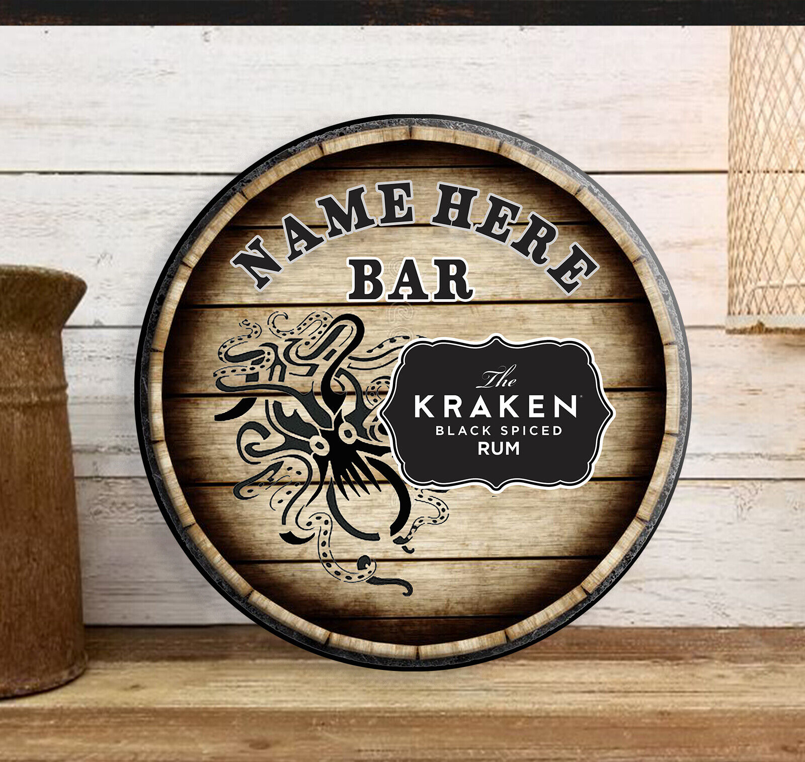 Personalised Kraken Rum Bar Round wall Shed Retro RRS063
