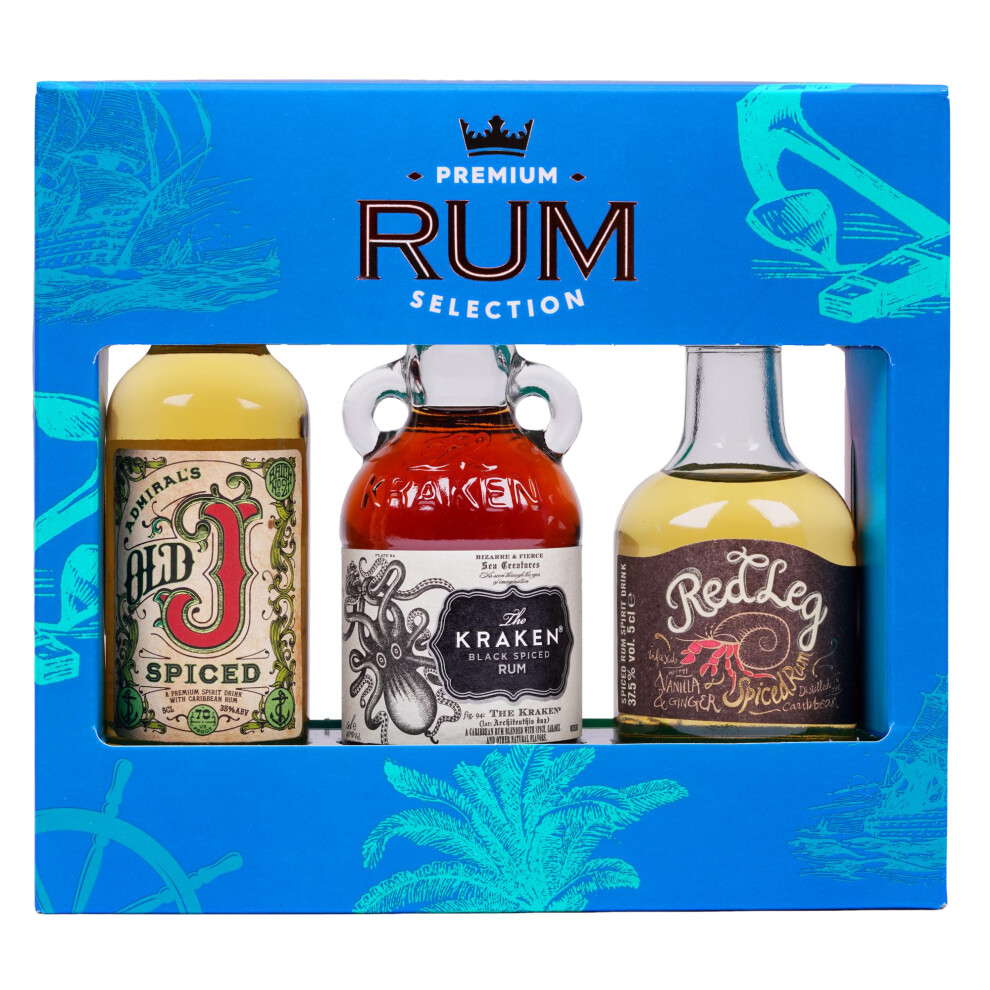 Rum Selection Trio, 3x 5cl Spiced Rums – The Kraken Black (40% ABV), Admiral's Old J (35%) & Red Leg (37.5%)