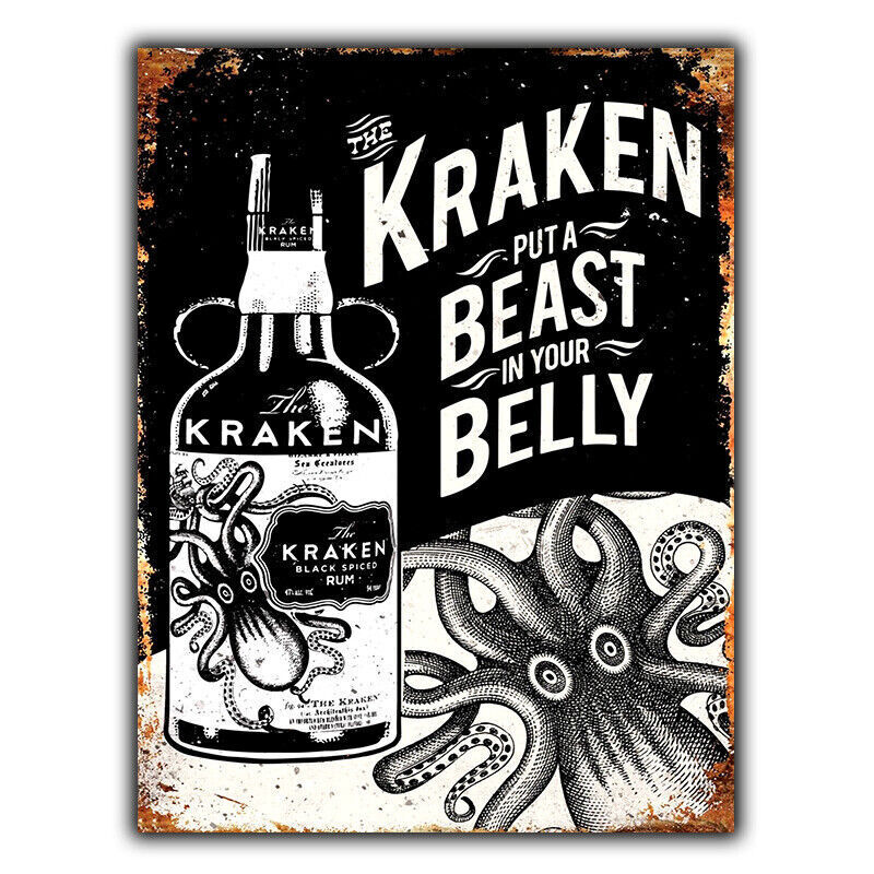 METAL SIGN WALL PLAQUE KRAKEN RUM Retro Vintage Advert Kitchen Bar Man Cave