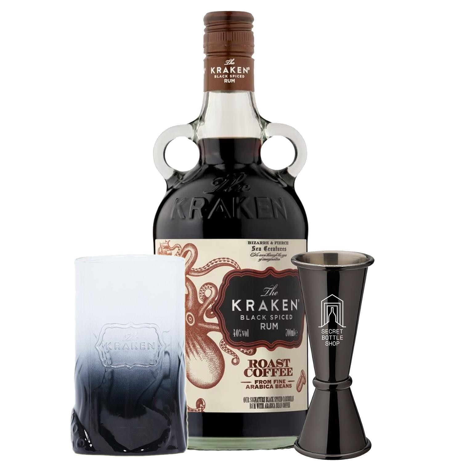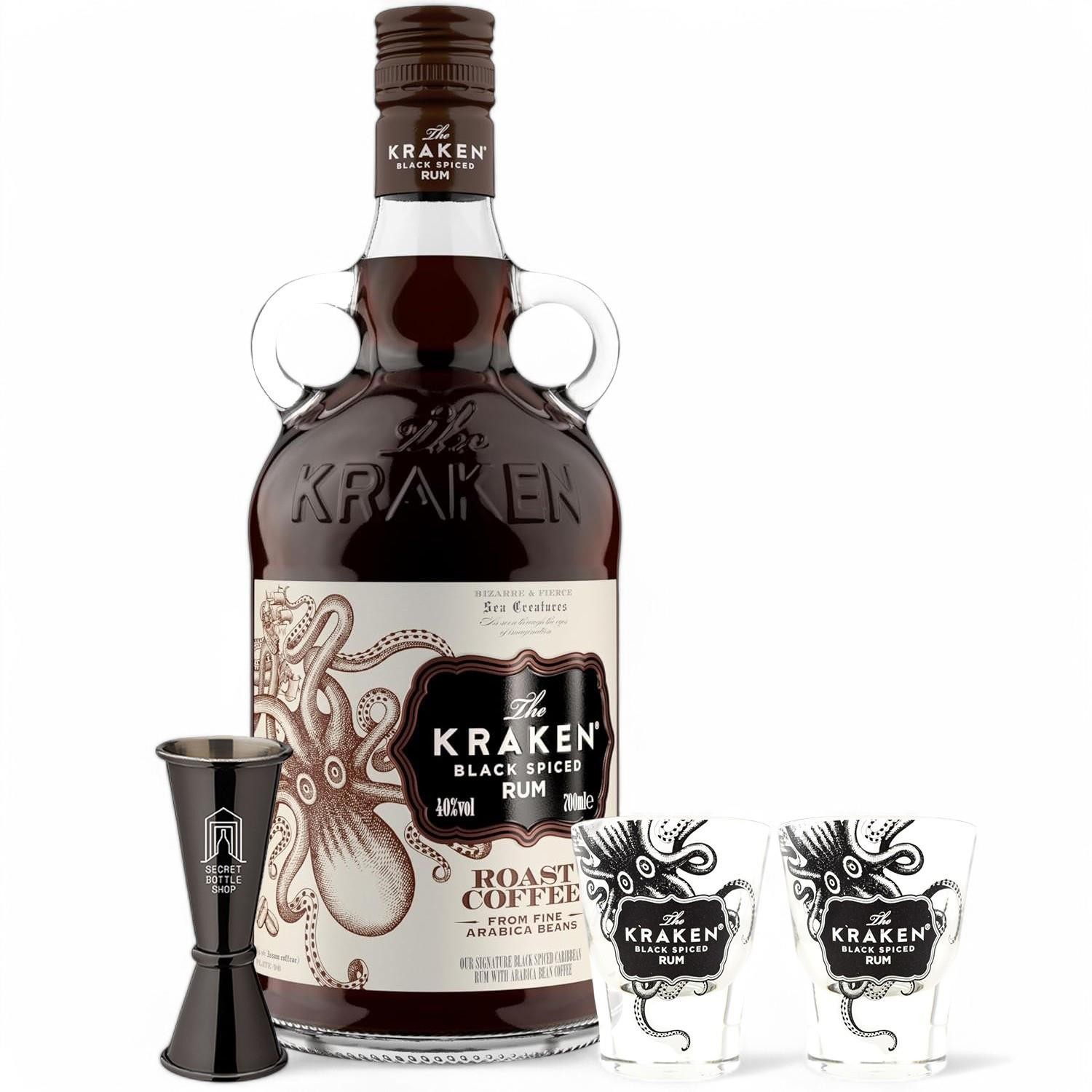 Kraken Black Roast Coffee Rum 70cl - Shot Glasses & Jigger Set