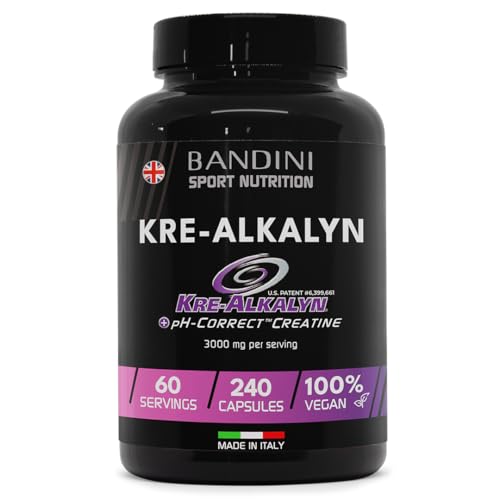 Bandini® Kre-Alkalyn® 240 Capsules - Buffered Alkaline Creatine - for Training, Sport, Gym and Pre Workout - 100% Vegan - Kre Alkalyn Based on buffered Creatine Monohydrate - Produced in Italy