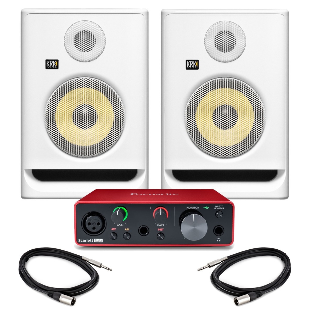 Focusrite Scarlett Solo (3rd Gen) and KRK Rokit RP5 Studio Monitors White