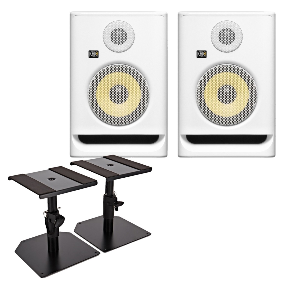 KRK ROKIT RP5 G5 Studio Monitors with Desktop Monitor Stands White
