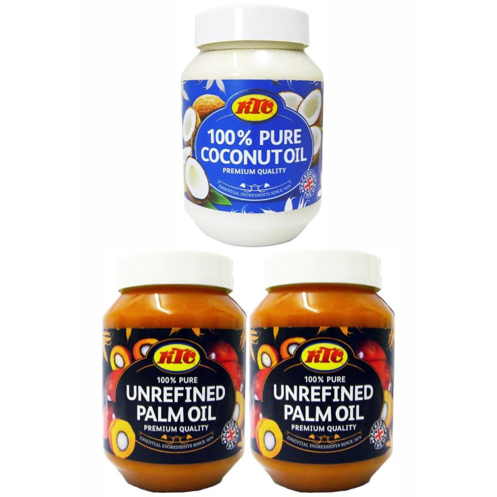 KTC Oil Combo Pack - KTC Unrefined Palm Oil 500ml x2 - KTC Pure Coconut Oil 500ml x1 (3 Pack)