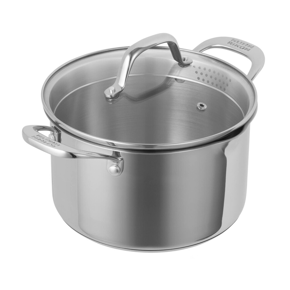 Kuhn Rikon Allround Plus 18/10 Stainless Steel Saucepan with Glass Draining Lid, Riveted Stay-Cool Handle & Two Pouring Spouts - 20cm/3.7L. Suitable