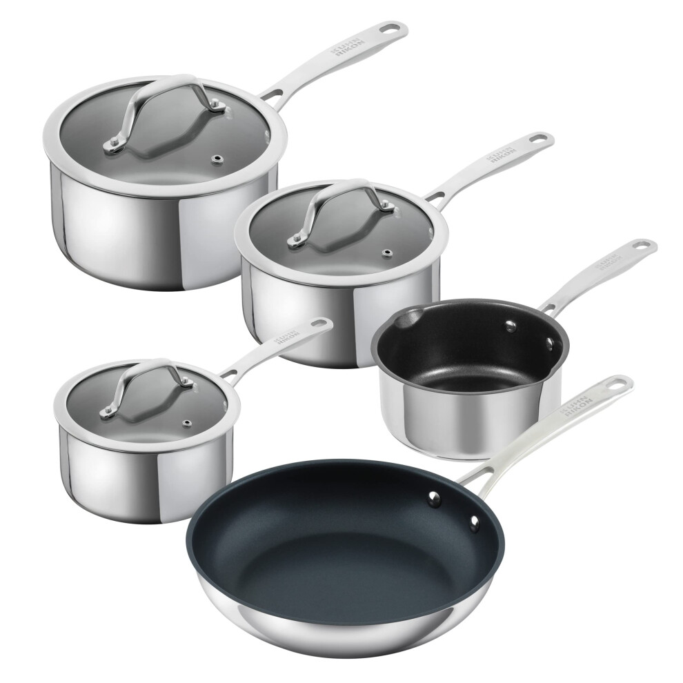 Kuhn Rikon Allround 5-Piece Set, Stainless Steel Cookware with Handles, Includes 16cm, 18cm, and 20cm Saucepans, 24cm Frying Pan, and 16cm Milk Pan,