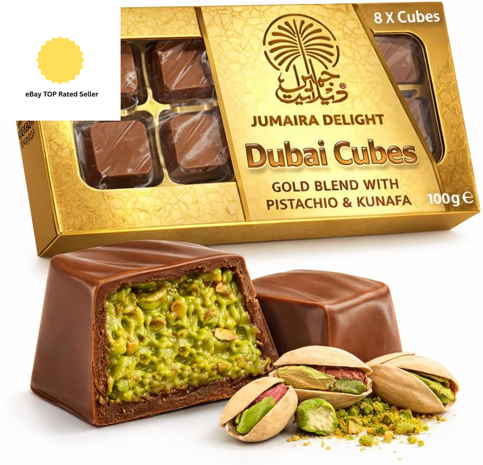 Dubai Chocolate Cubes Box (8 Cubes in a Box) Jumaira Delight Kunafa with Pistac