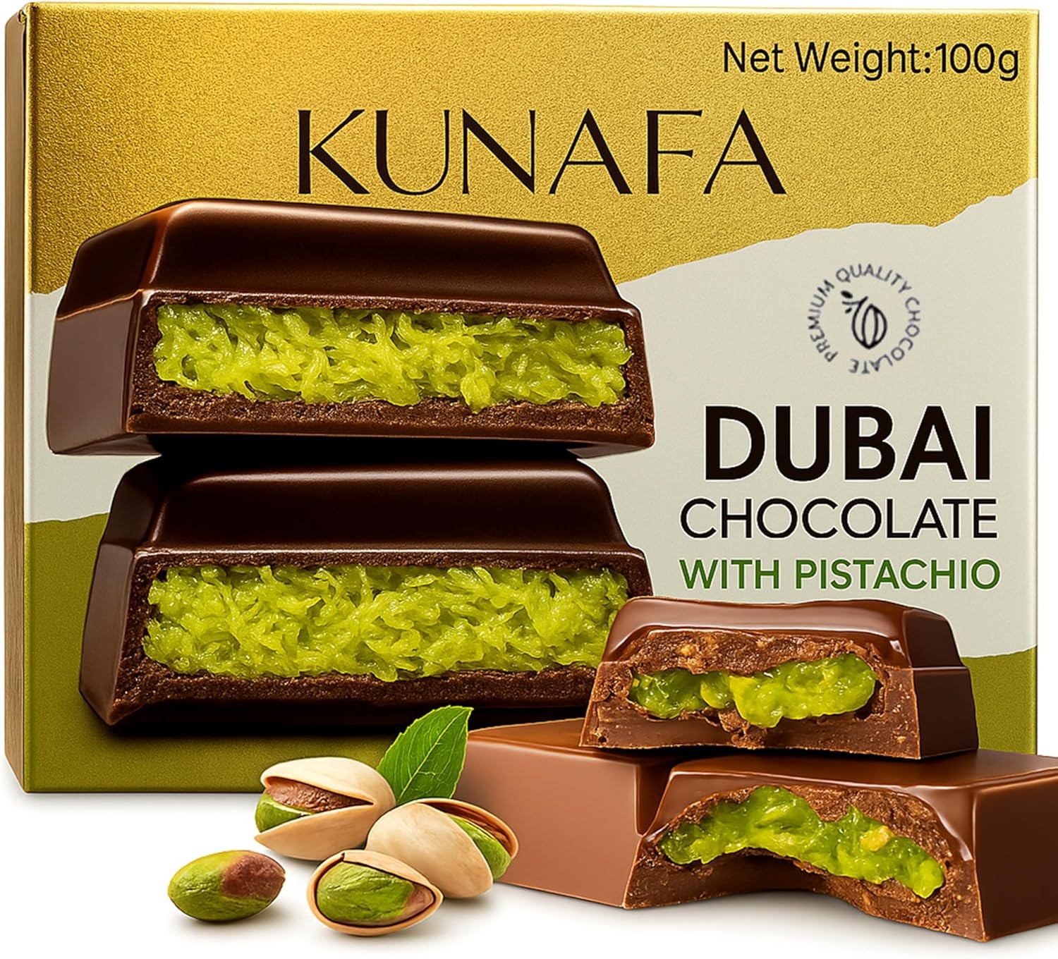 Dubai Chocolate Bar 100g â Premium Chocolate Filled with Pistachio & Kunafa â