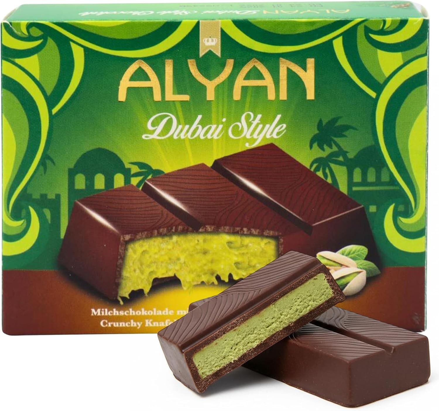Alyan Dubai Chocolate Bar Pistachio Kunafa – Authentic UAE Milk Chocolate 100