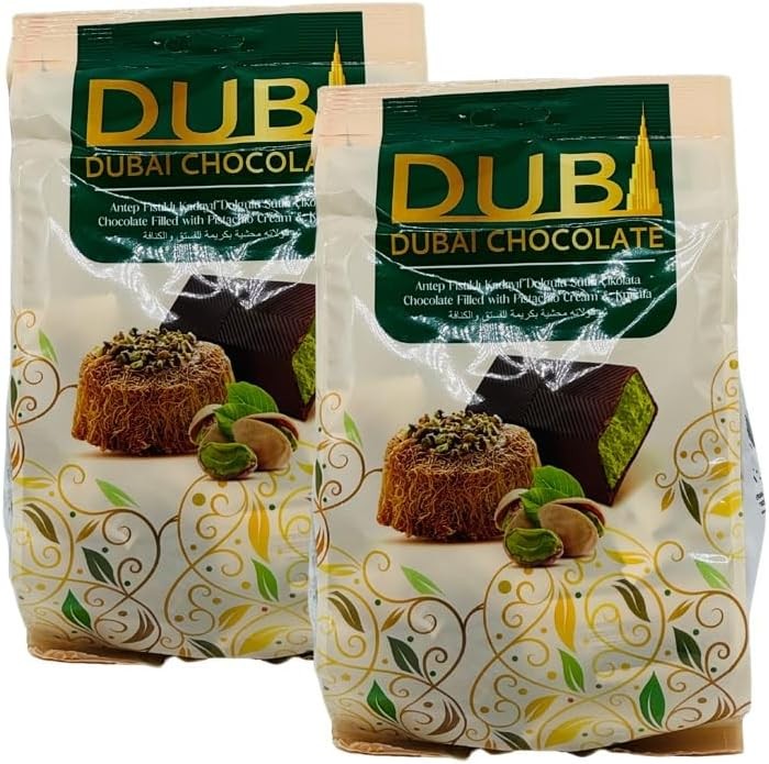 Dubai Chocolate Bars with Pistachio Cream and Kunafa Filling 400g x 2 Bags, Ind
