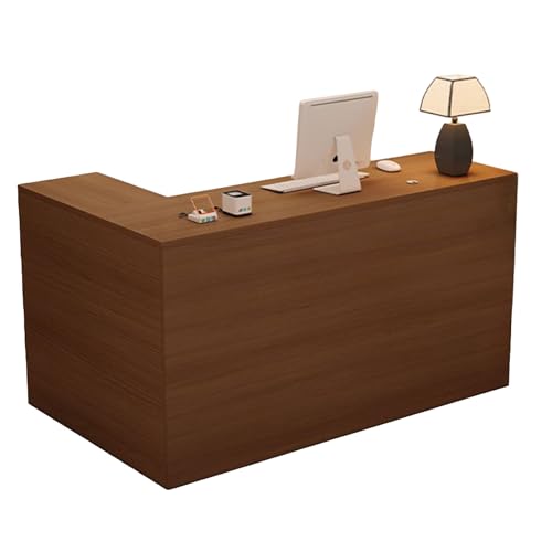 JQslycdmv L-shaped reception desk, reception table with lockable drawers & corner cabinet door for hotel, office, retail(Wood-left,220cm)