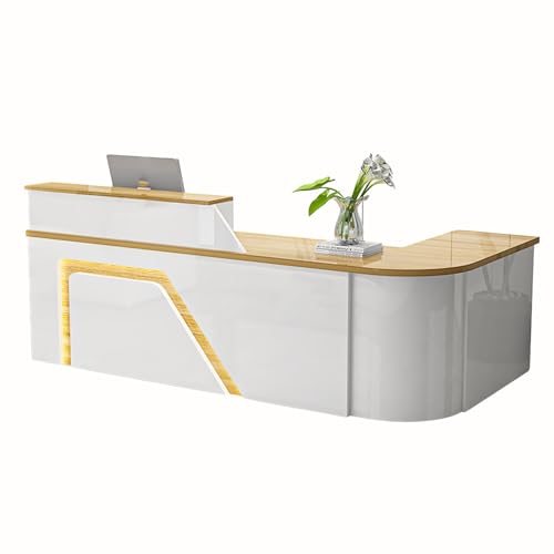 JQslycdmv L-Shaped Reception Desk, Reception Room Table with Drawers with locks, stylish lighting, for Offices & Businesses, Salons, Lobbies(White-right,220cm)