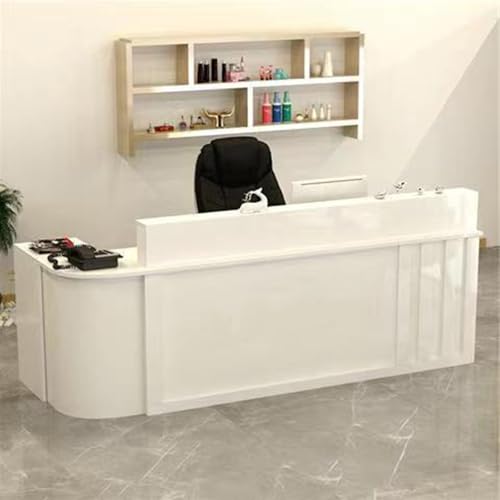 JQslycdmv Reception type L, with drawers and lockable cabinets & keyboard shelf, for hairdressers, beauty salons, shops, hotels and offices(Bianco,220cm)