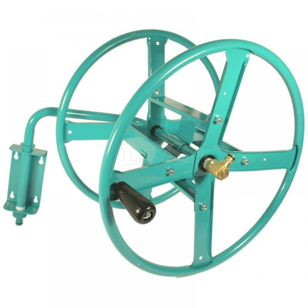 Wall Mounted Steel Hose Reel Kit Stores 75m of 1/2" Garden Hose