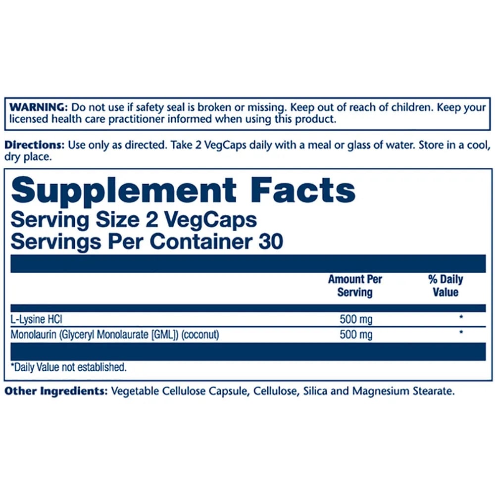 Solaray L-lysine Monolaurin Capsules 60 Units