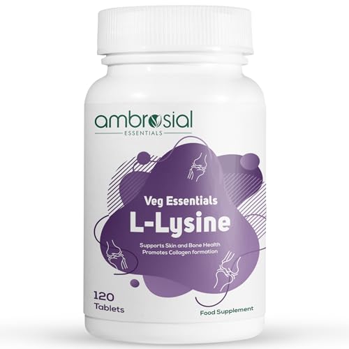 Ambrosial High Strength L-Lysine Tablets 500mg | Gluten Free Collagen Tablets | Essential Amino Acids for Immune Function & Collagen Synthesis | Lysine 500mg for Active Lifestyle (120 Tablets)
