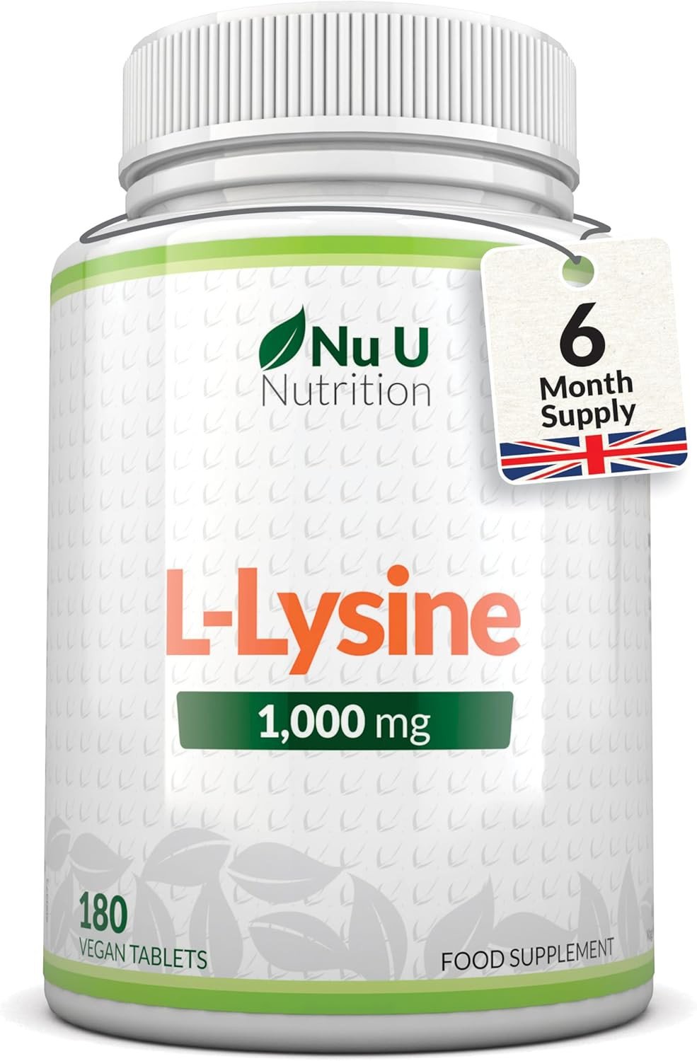 L-Lysine 1000Mg High Strength - 180 Vegan Tablets - 6 Month Supply - Gluten Free