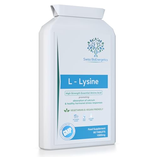 L-Lysine Tablets 1,000mg 90 Tablets - High Strength Essential Amino Acid Promoting Absorption of Calcium and Healthy Hormonal Stress Responses