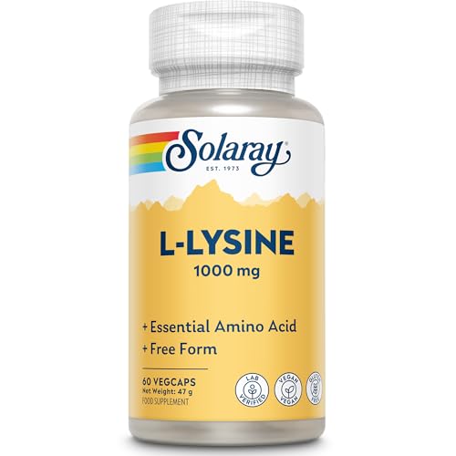 Solaray - L-Lysine 1000mg - 60 Vegan Capsules not Tablets - 500mg per Capsule - Double Strength L Lysine Amino Acid Supplement - Lab Verified, GMO and Magnesium Stearate Free