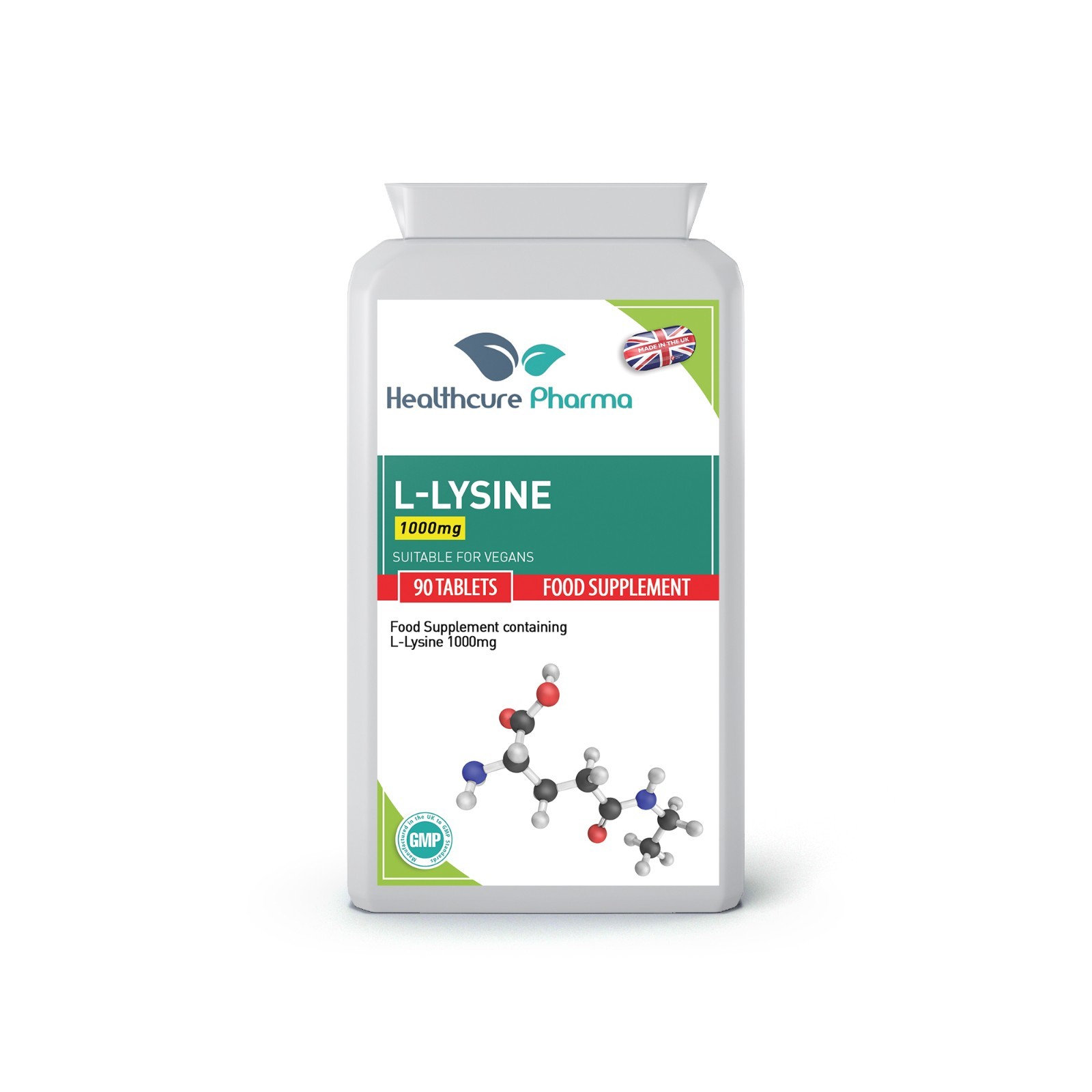L-Lysine (Lysine) 1000mg 90 Tablets HIGH STRENGTH Amino Acid Supplement UK Made