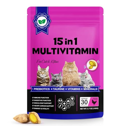 15-in-1 Multivitamin Soft Chews for Cats – With L-Lysine, Taurine & Omega-3 – Daily Nutritional Support & Overall Wellbeing – Natural Soft Chews for All Cats – 30 Day Supply