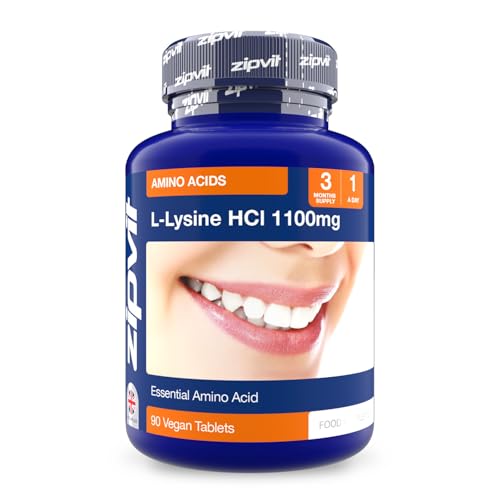 Zipvit L Lysine 1100mg, 90 Vegan Lysine Tablets, High Strength Essential Amino Acid Supplement, 3 Month Supply for Daily Wellness Support