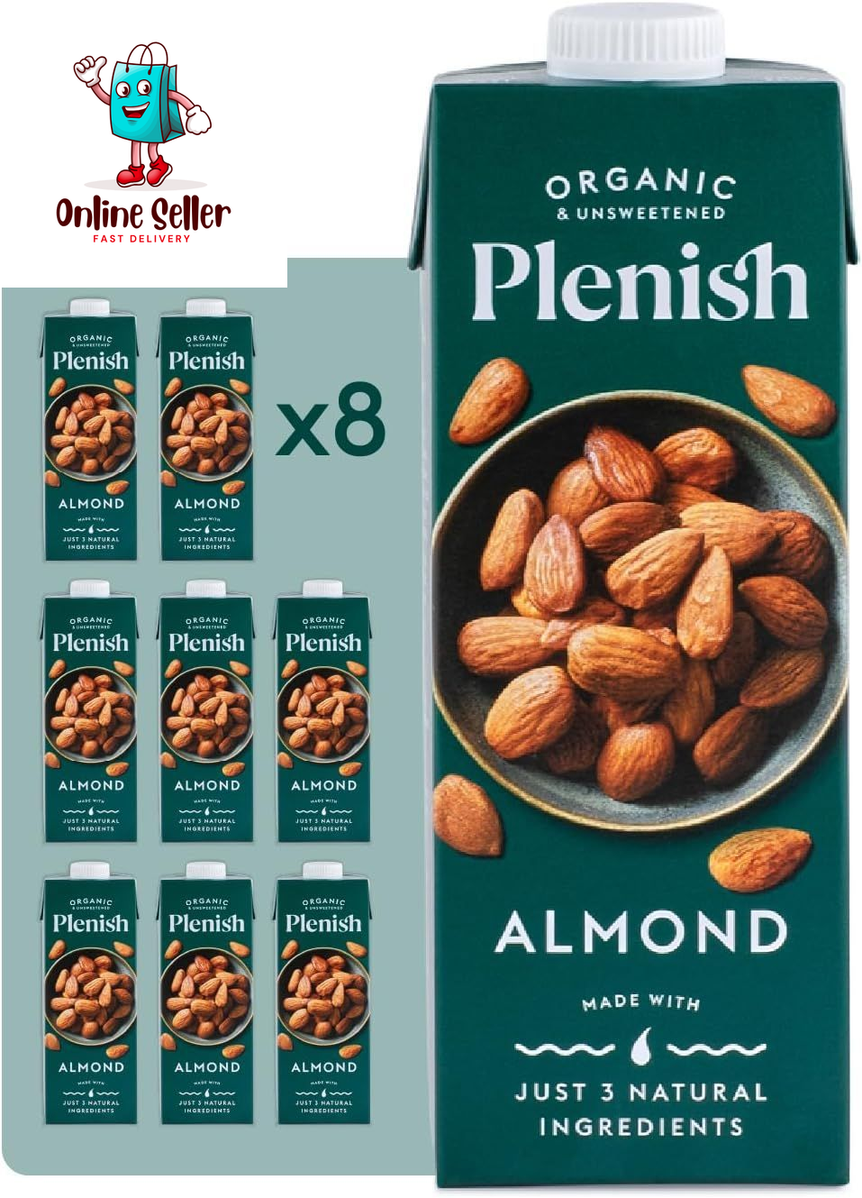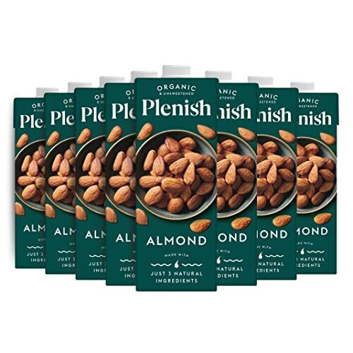 Plenish Unsweetened Organic Almond Milk 1L - Pack of 8, Dairy-Free Delight