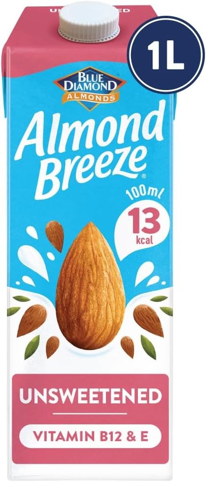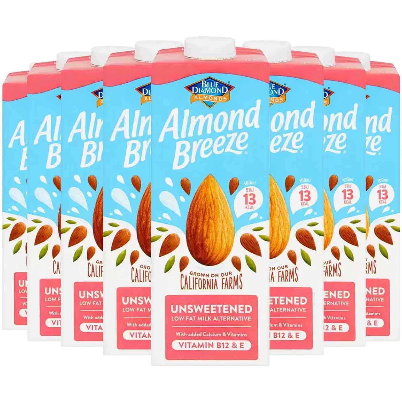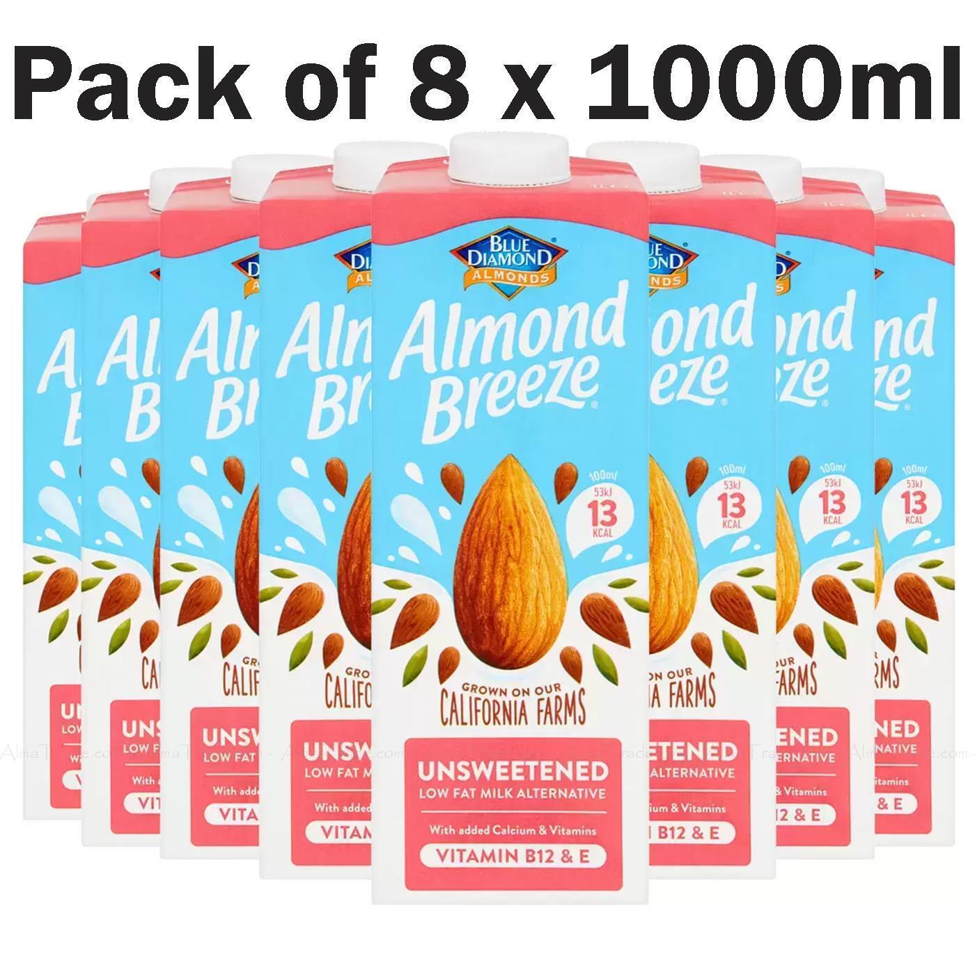 Blue Diamond Almond Breeze Unsweetened Drink Low Fat Milk Alternative Pack 8x 1L