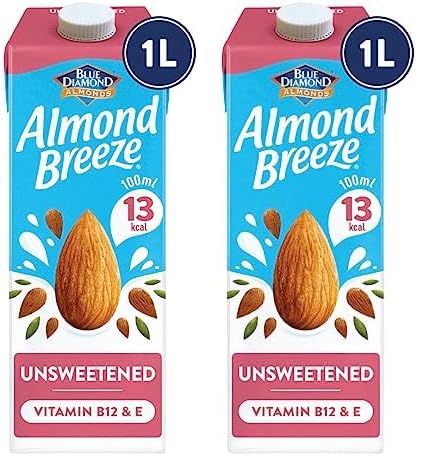 Blue Diamond Almond Breeze Unsweetened Almond Milk, 8 x 1L (Pack of 2)