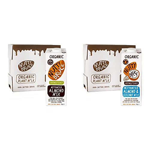 Nutty Bruce - Unsweetened Organic Activated Almond Milk - Certified Organic & Vegan Milk - 6 x 1L & Organic Activated Almond Coconut Milk - Certified Organic & Vegan Milk - 6 x 1L