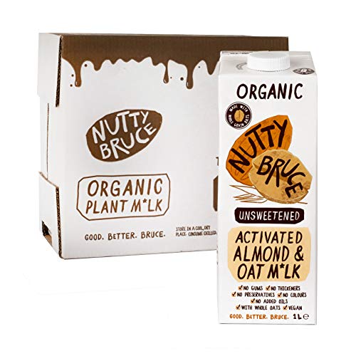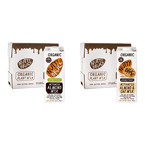 Nutty Bruce - Unsweetened Organic Activated Almond Milk - Certified Organic & Vegan Milk with No Preservatives, Colours or Added Oils - 6 x 1L & Organic Activated Almond & Oat Milk - 6 x 1L