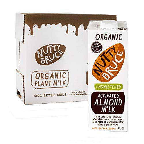 Nutty Bruce - Unsweetened Activated Almond Milk - Certified Organic & Vegan Alternative Milk, No Preservatives, Colours or Added Oils, Lactose Free, Dairy Free, Soy Free - 6 pack x 1L
