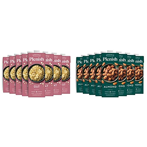 Plenish Organic Unsweetened Oat Milk (8 x 1 Litre) & Unsweetened Organic Almond Milk 1L (8x 1Litre)