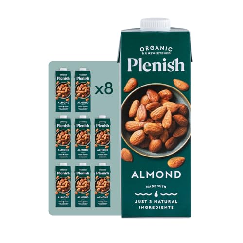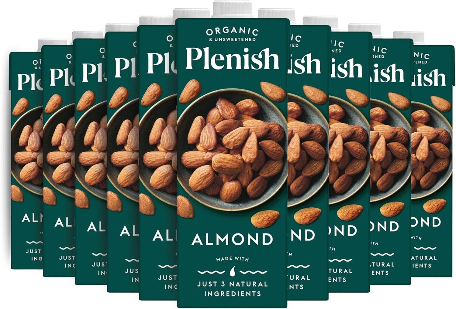 Plenish Unsweetened Organic Almond Milk 1L (Pack of 8) FREE SHIPPING