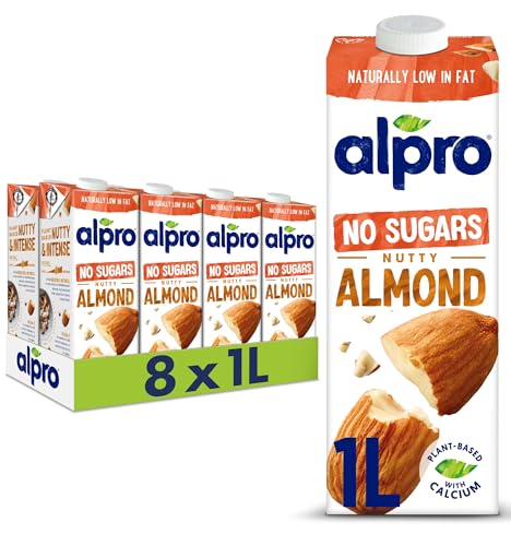 Alpro Almond Drink - No Sugars - Unsweetened Plant-Based Long Life Dairy Free & Lactose Free Milk Alternative - 1L (Pack of 8)