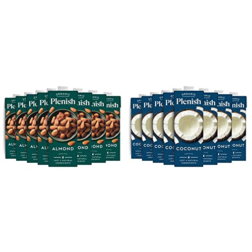 Plenish Unsweetened Organic Almond Milk 1L (8x 1Litre) & Organic Unsweetened Coconut Milk (8 x 1 Litre)
