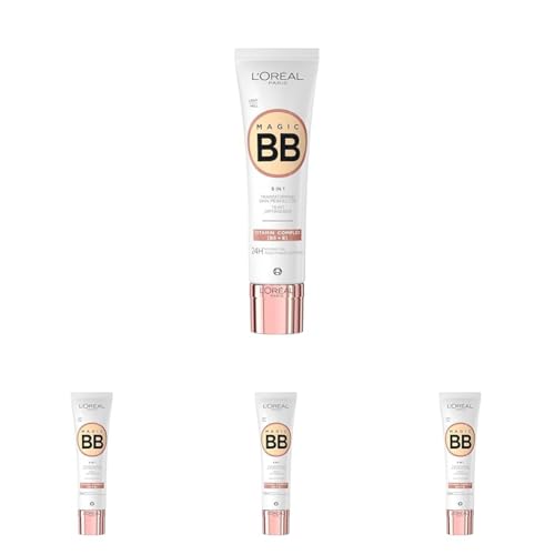 L'Oréal Paris Magic BB Cream with SPF 11, 5-in-1 Tint with Vitamin B5 and Vitamin E, Lightweight Hydrating Formula Adapts to Skin Tone for a Natural Glowy Finish, 30 ml, Shade: 02 Light (Pack of 4)