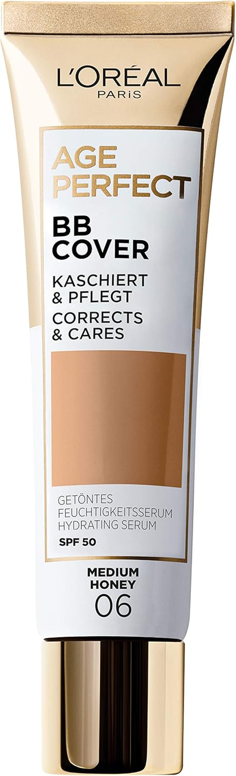 L'Oreal Paris Age Perfect BB Cream 06 Medium Honey, light-weight, Infused with hydrating serum, Vitamin B3, SPF 50