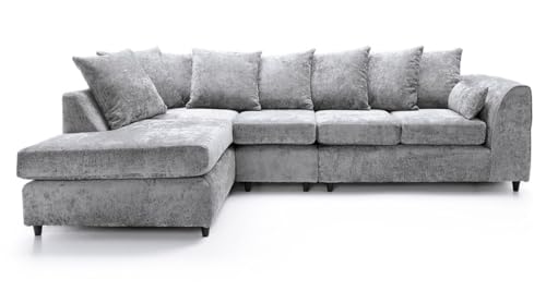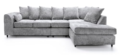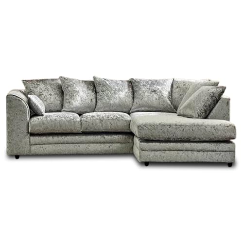 Furniture 786 Crush Velvet Settee - Silver L Shaped Corner Suite - Comfort Foam Filled Settee - Durable High Back Sofa - Left Right Hand Couch for Living Room and TV Lounge Indoors (Righ Hand)