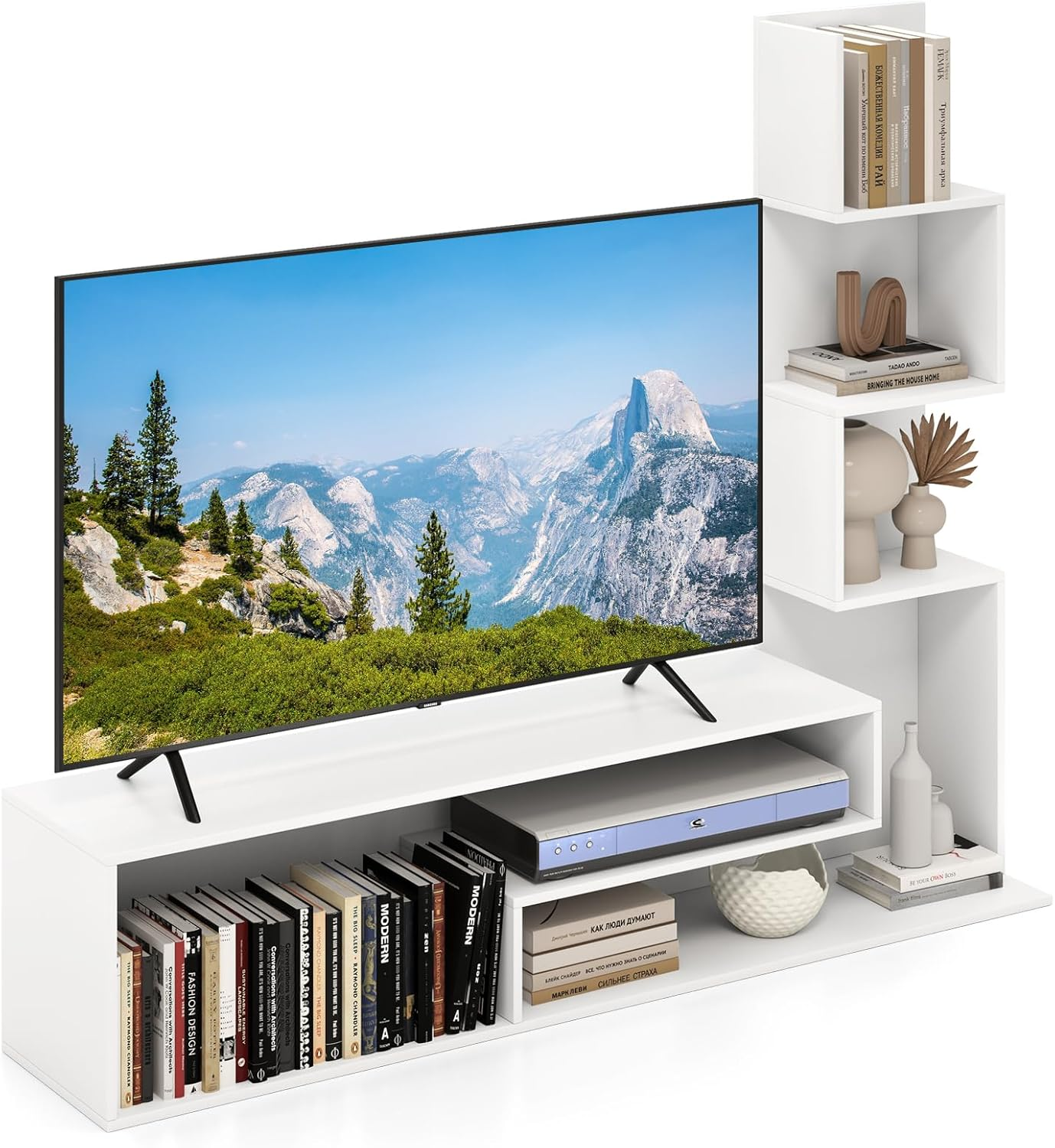 Multigot TV Stand for TVs up to 60 Inches, 2 Pieces Adjustable TV Console Media Entertainment Center with L-Shaped Storage Shelves, Free Combination TV Cabinet Unit for Living Room Bedroom (White)