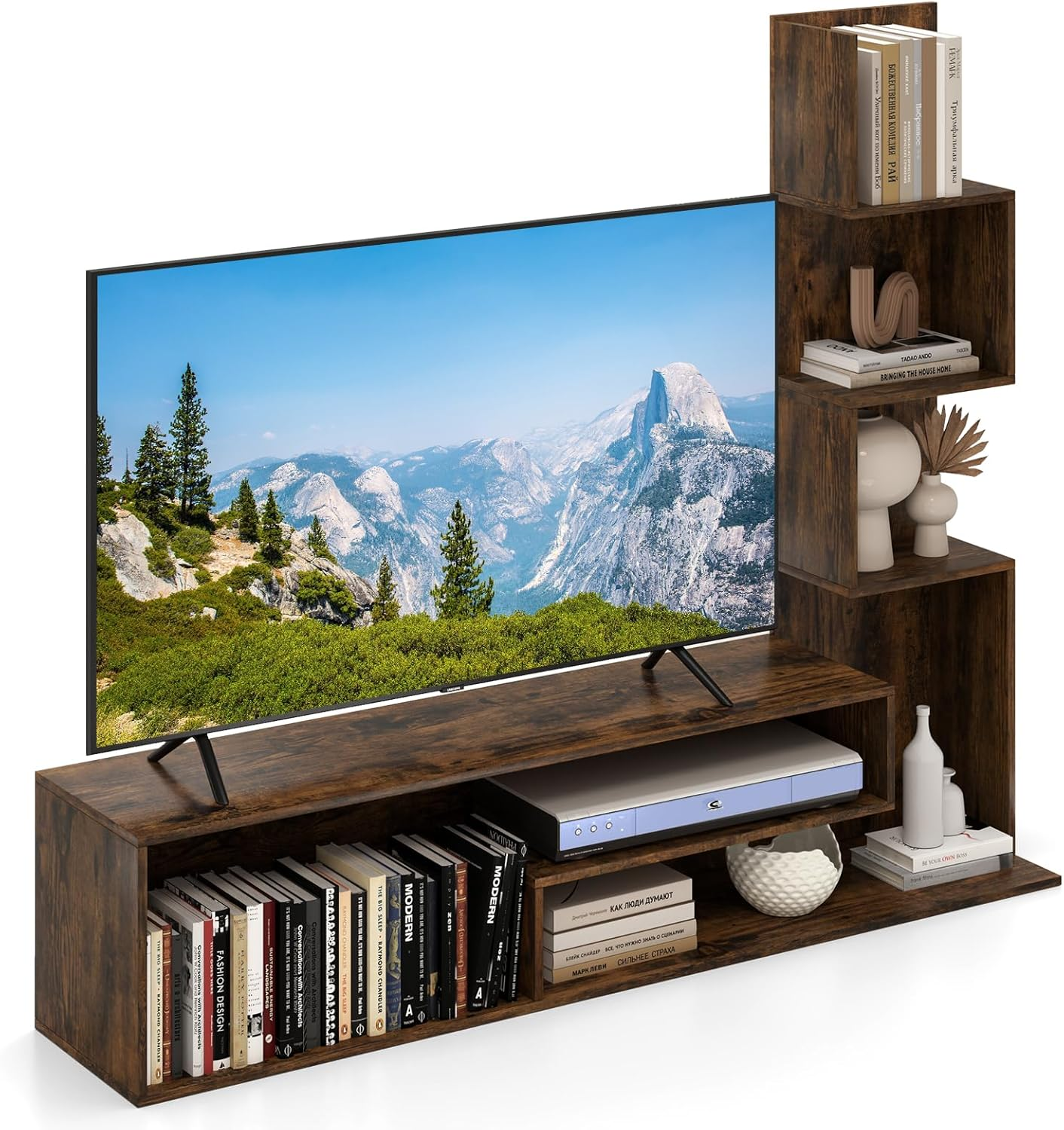 COSTWAY TV Stand Cabinet for 60 Inch TVs, Free Combination Adjustable Media Entertainment Center with L-Shaped Storage Shelves, Wooden TV Unit Console Table for Living Room Bedroom (Rustic Brown)